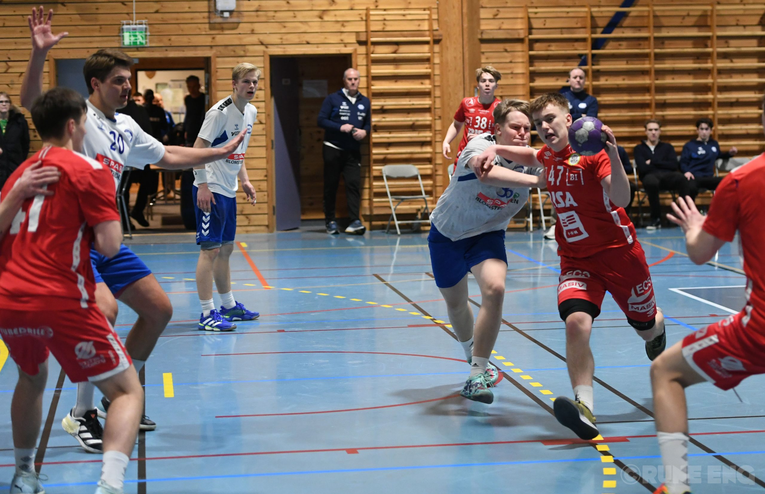 Foran de rundt 50 fremmøtte tok vertene tak i kampen og ledet 4-0 etter kun seks minutter. Nærbø 2 fikk en spiller skadet i kampens første angrep og det satte nok sitt preg på laget i rødt for dagen. Gjestene kom så ajour til 4-4 seks minutter senere. Etter dte fulgte lagene hverandre frem til 8-7. Da satte hjemme på ny fire på rad og klubben ledet 12-7 da lagene gikk inn i de siste åtte minuttene av omgangen. Den ledelsen holder seg omgangen ut og vertene leder 16-11 til hvilen.